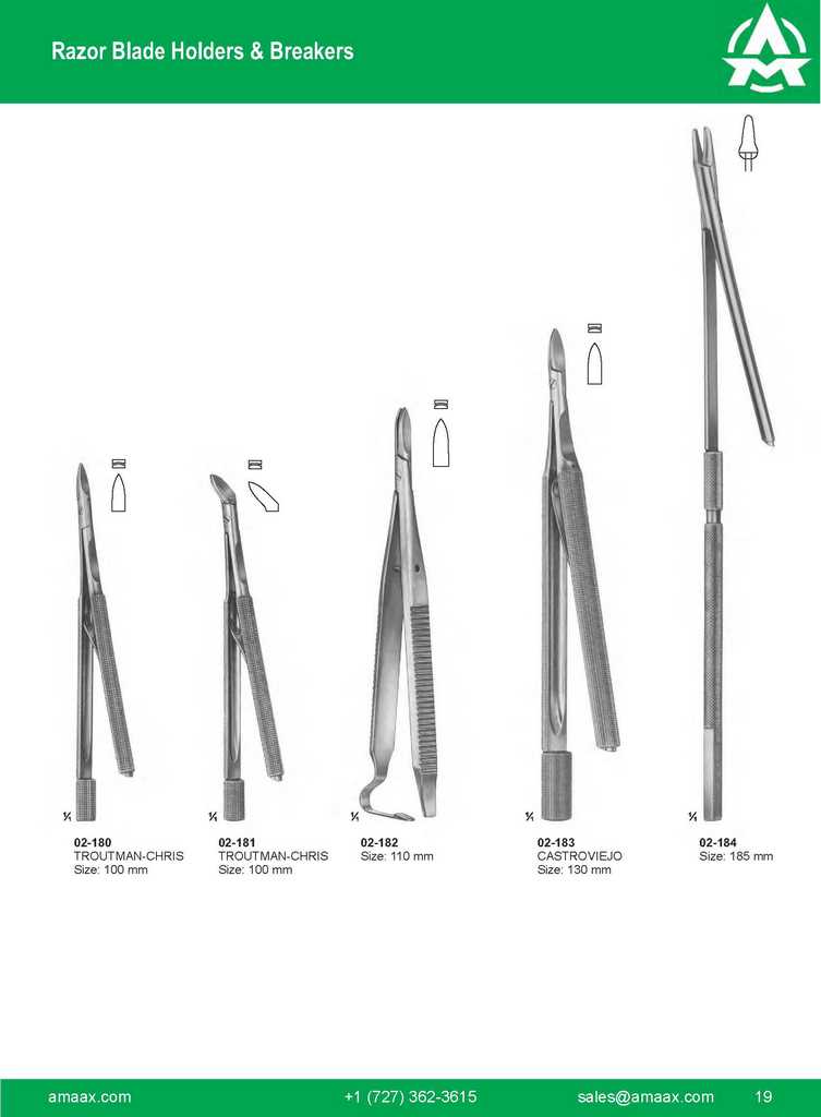 02-180 TROUTMAN-CHRIS Size: 100 mm 02-181 TROUTMAN-CHRIS Size: 100 mm 02-182 Size: 110 mm 02-183 CASTROVIEJO Size: 130 mm 02-184 Size: 185 mm