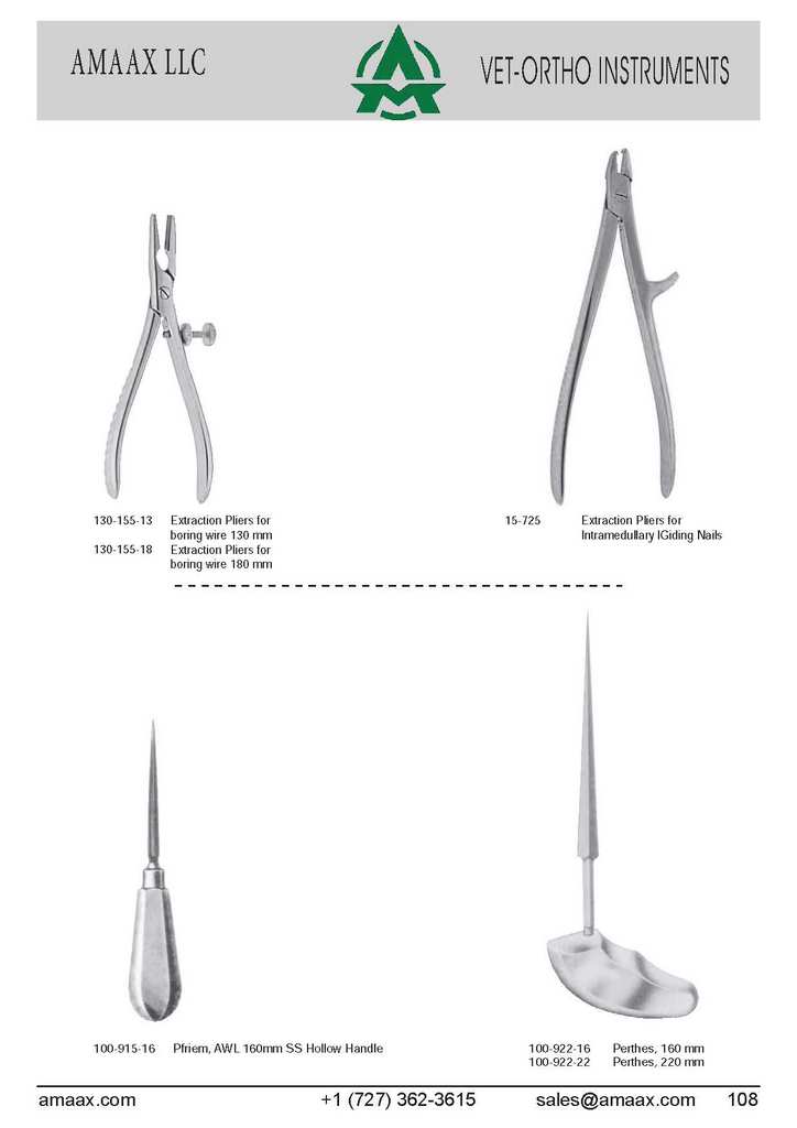 130-155-13 130-155-18 15-725 Extraction Pliers for Intramedullary lGiding Nails boring wire 180 mm 100-915-16 Pfriem, AWL 160mm SS Hollow Handle 100-922-16 Perthes, 160 mm 100-922-22 Perthes, 220 mm